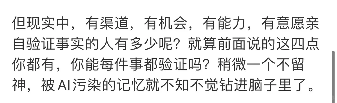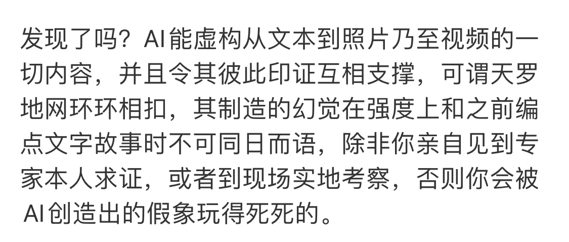 可以再深入点,ai引用一本书,你找到那本书的实体验证ai说的真假,发现这本书里面真的有这段文字,你放心啦;然而这本书是作者用ai写的