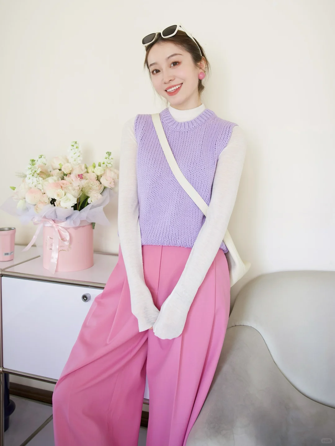 期待春天|香芋紫毛衣➕粉色直筒裤甜美日常💕