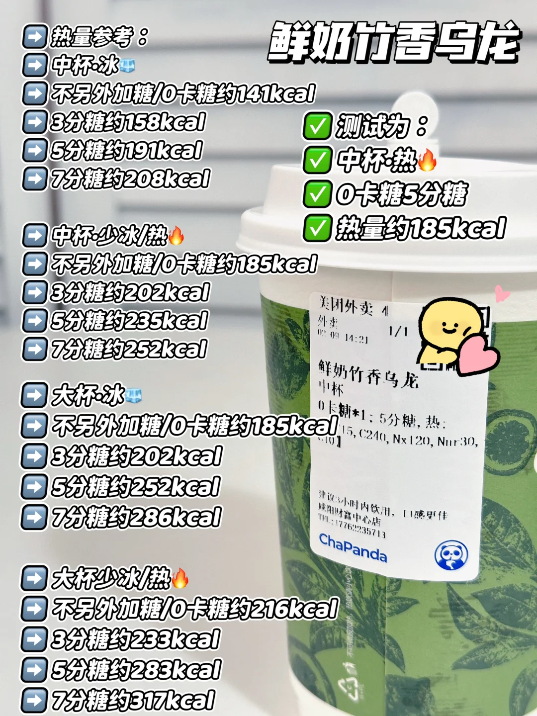 测试为:热🔥0卡糖5分糖 热量约185kcal✔