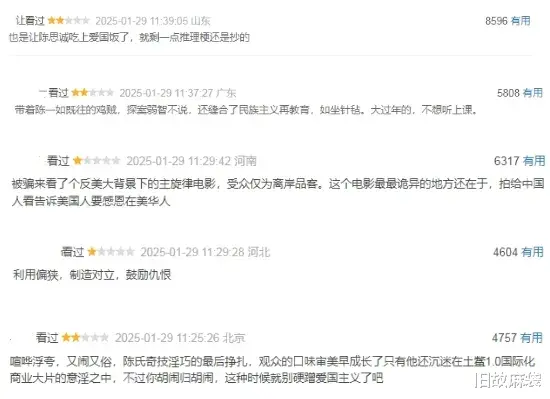 有网友质疑电影“喜剧,推理,宏大叙事都想要,但都没讲好”,还有网友装都懒得装了,直接破口大骂“讨厌电影讲民族主义,不想大过年听课”,说实话,听到这些话其实挺悲哀的,某些人是不是对爱国过敏啊,一谈爱国情怀、民族大义就要跳出来打差评,《唐探1900》年代设定在那儿,就是为了拍民族大义的啊,拜托这些喷子在开骂前,能不能先了解一下这段历史啊!