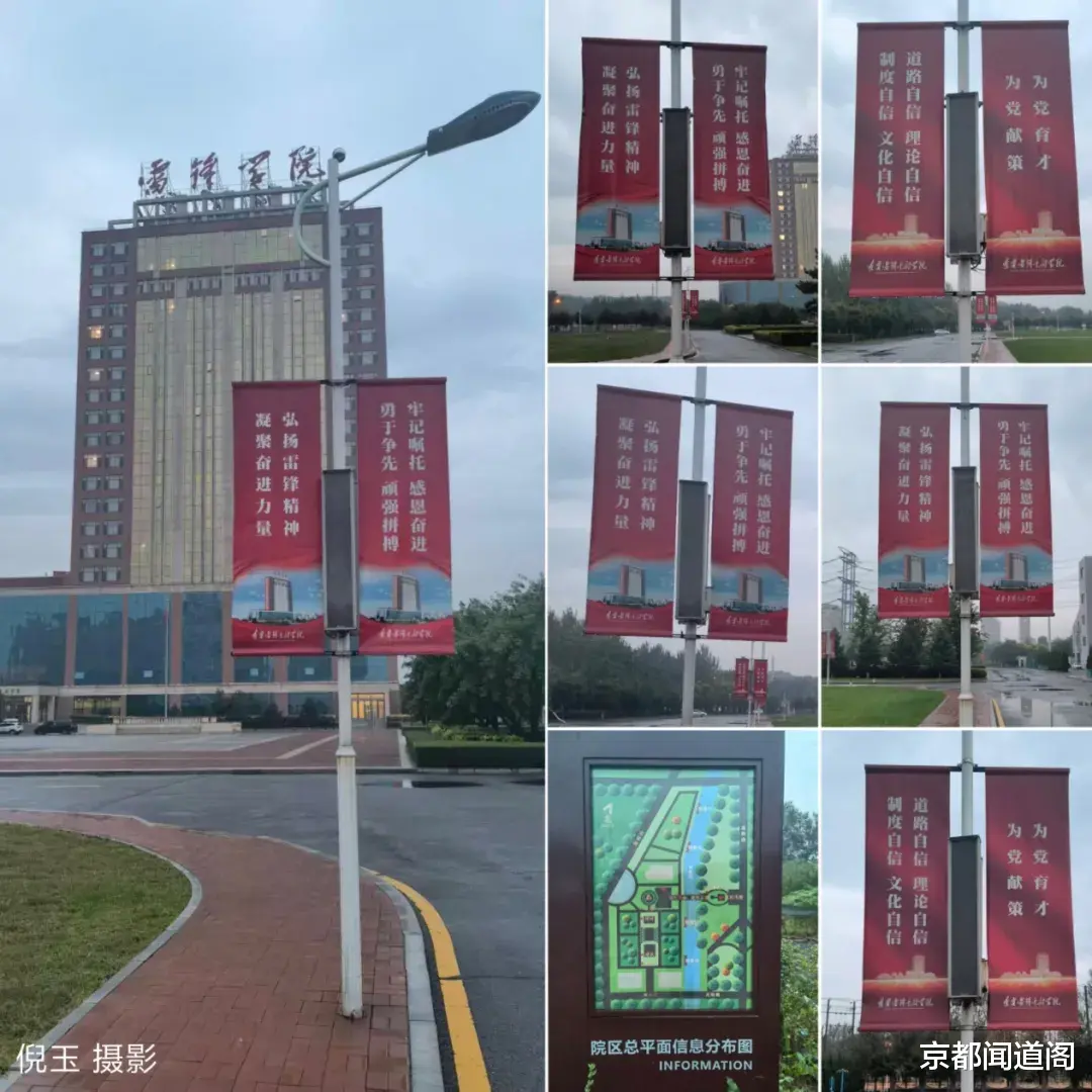 学院西北门因为施工虽然临时关闭,但是靠近院内的围墙背面“把雷锋精神代代传承下去”11个红色大字让人过目难忘,综合楼前面还有两块宣传橱窗布置的井井有条……不知不觉间,一个小时的晨游已接近尾声。错峰游览的好处,便是能在无人打扰的静谧中,慢慢感受每一处细节背后的深意,没有喧嚣的人群,只有自己与精神的对话,自在又安心。