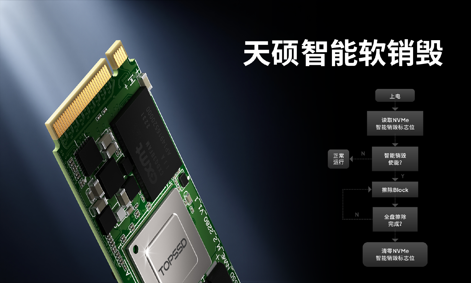 国产固态硬盘厂商在智能软销毁技术方面已经取得了显著进展。以湖南天硕为例,其G40系列工业级SSD支持定制化的智能软销毁功能,通过M.2金手指PIN67触发,擦除后数据以0xFF填充,确保数据不可恢复。该系列产品采用长江存储原厂颗粒,配合优化的主控算法,在提供数据安全保护的同时,也保证了存储性能的稳定性。