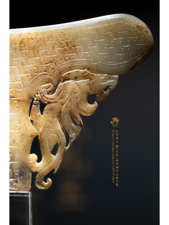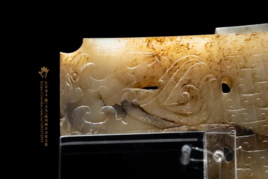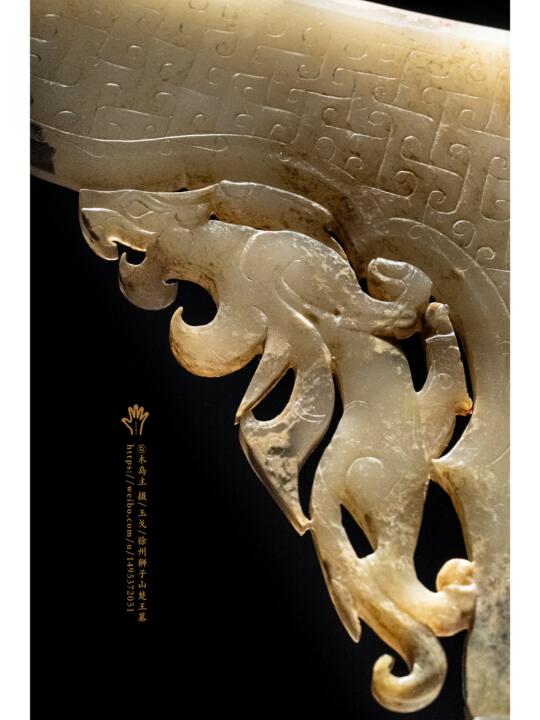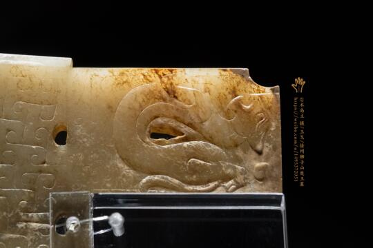 完美的设计: “援和胡” 之下透雕一条玉龙,两面相同,而“内”上两面浮雕龙和凤,戈体浮雕勾连云纹。