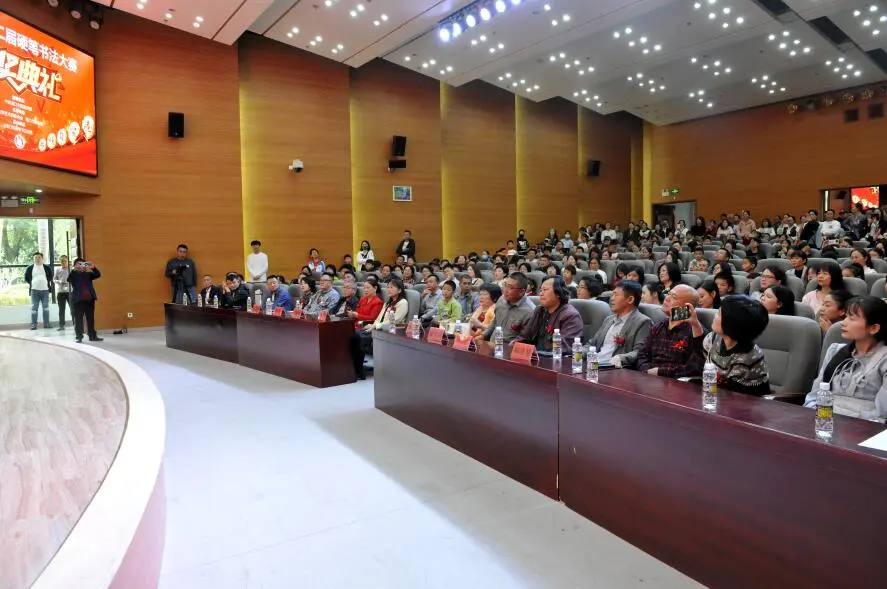 中共海口市委宣传部对外宣传科科长、三级调研员韩娜,海口市文学艺术界联合会二级调研员徐健燕,中国书法家协会理事、海南省书法家协会副主席兼秘书长杨文修,海南省书法家协会副秘书长、海口市书法家协会主席吴青山,中国硬笔书法协会理事、海口市硬笔书法协会主席、海口市第二届硬笔书法大赛组委会负责人田晓慧,教育部教育考试院书画等级考试海南省考试中心主任柴碧君以及海口市硬笔书法协会主席团成员、大赛组委会成员、全市多所中小学校的师生和新闻媒体等参加颁奖典礼暨获奖作品展。
