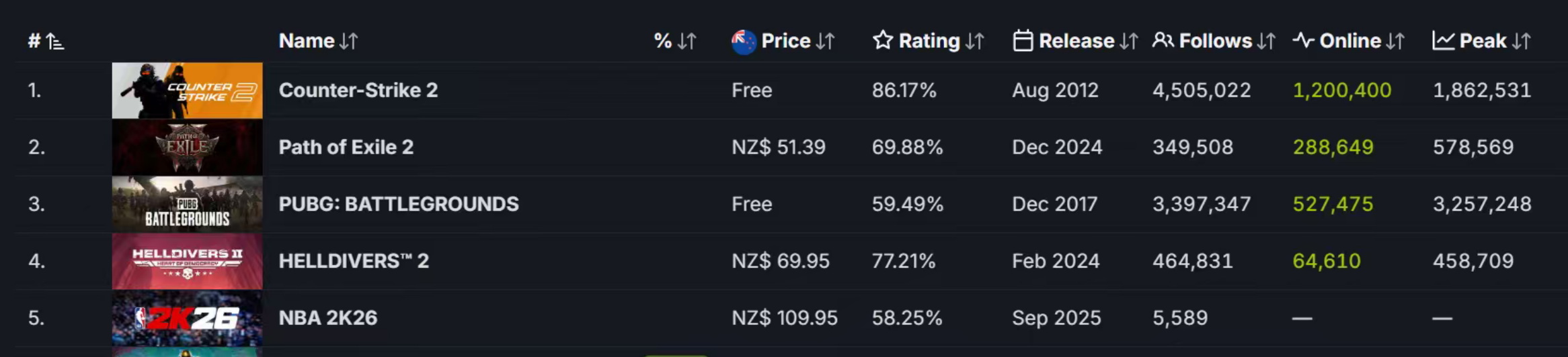 自去年底国际服EA开启以来,《流放之路2》就获得了全球火爆的成绩,连续8周蝉联Steam畅销榜榜首,同时在线人数峰值超60万,Twitch平台观众在线峰值达123万。随着8月30日国际服0.3.0版本的上线,再次让《流放之路2》成为视线焦点:其在Steam全球畅销榜的排名一度回升至第二位,在线玩家峰值突破35万人,展现出惊人的市场号召力。