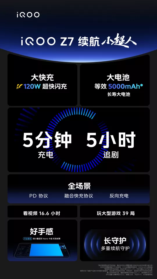 IQOO Z7核心的方面,除了是搭载骁龙782G之外,还在上一代的基础上,快充升级到了120W的闪充和等效的5000毫安电池。在鱼和熊掌不可兼得的情况之下,IQOO Z7两者都兼顾到了,既有百瓦快充,又有大电池,还有旗舰才有的无线反向充电。