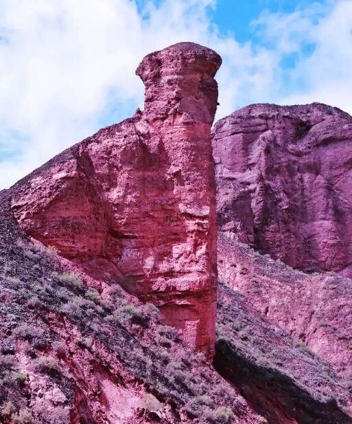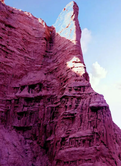 这抹惊艳的粉红,源自于白垩纪时期,沉积而形成的砂岩。一亿多年前,此地是巨大的湖泊,砂砾以及铁质矿物,层层地沉积着,在时光里,渐渐地固结成岩。