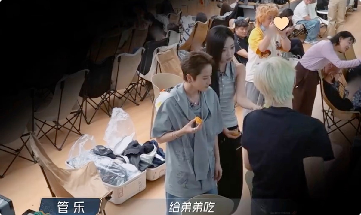 不仅如此,管乐的没有分寸也出现在《披哥》助阵舞台上,管乐专程去给朱志鑫送枣,原本是个很小的互动。