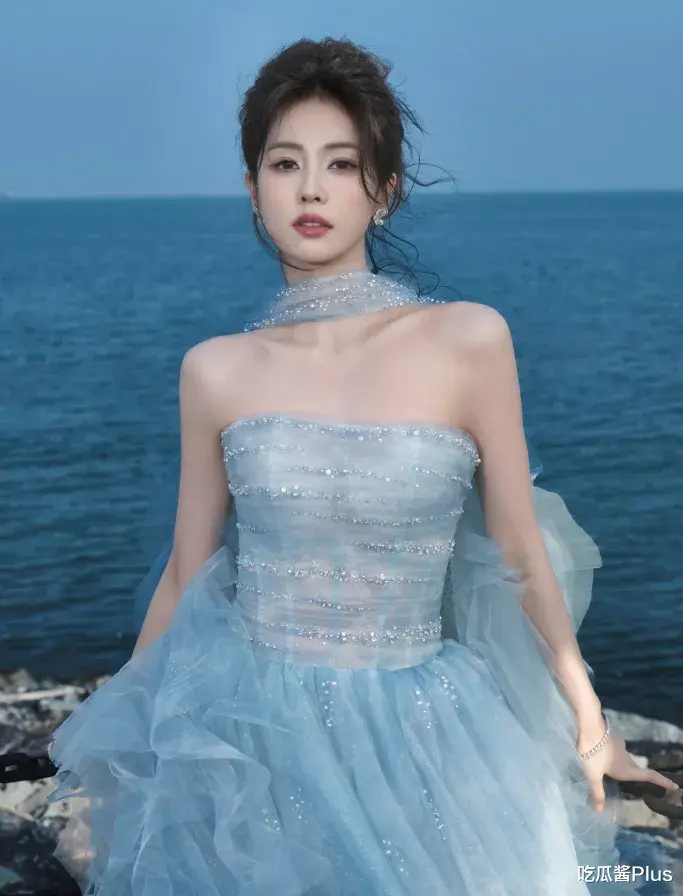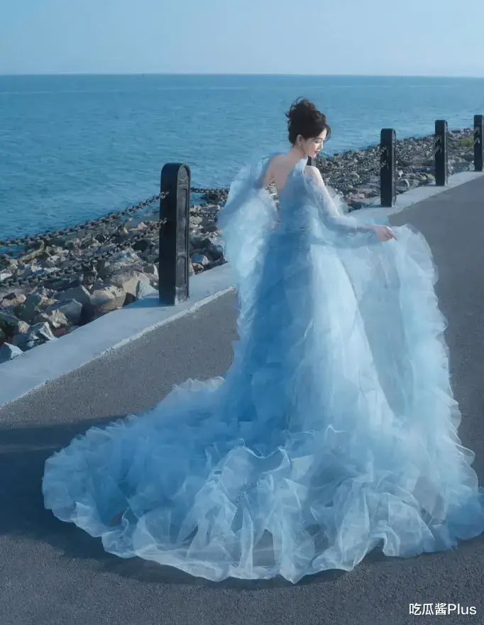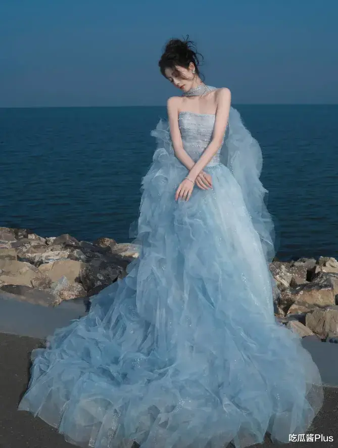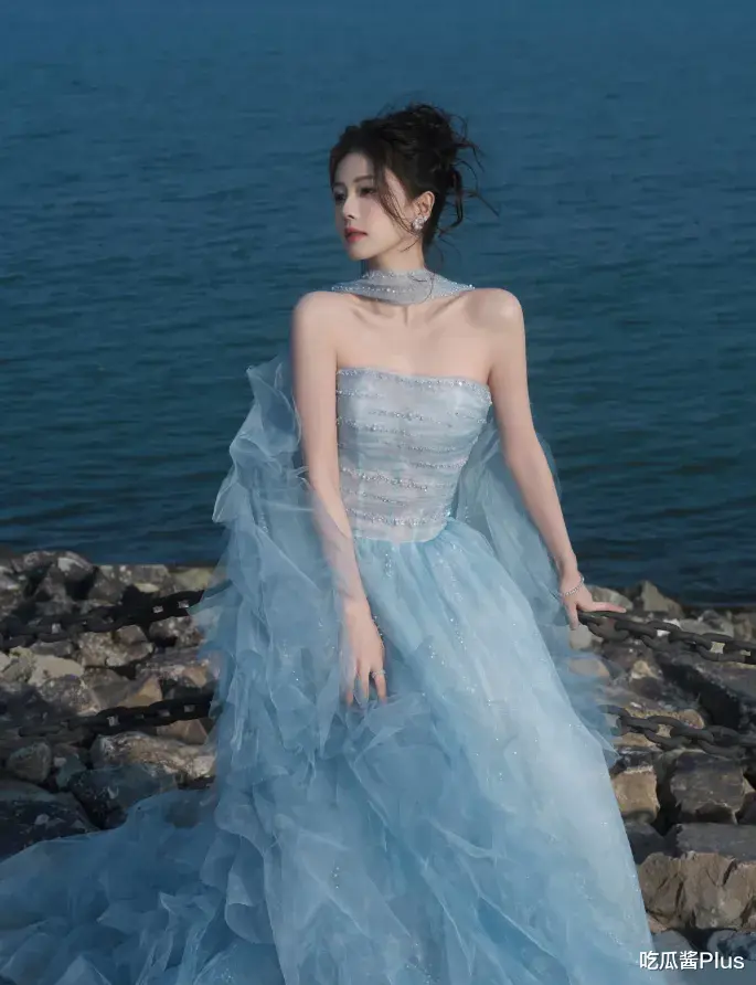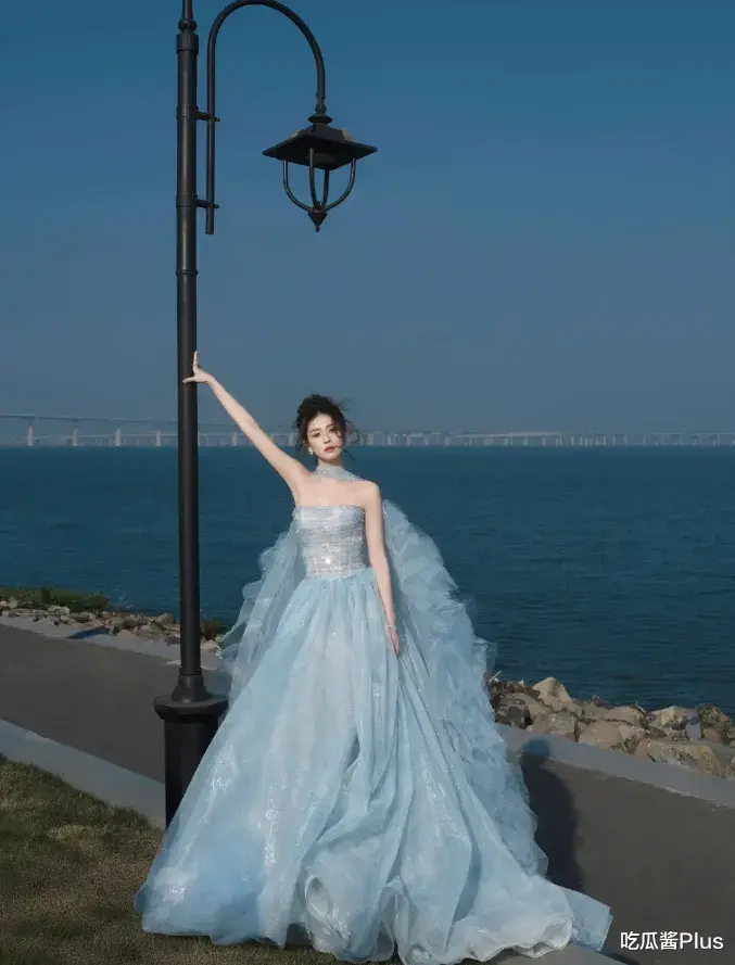 这条淡蓝色的抹胸拖尾纱裙,恰到好处地展现了她的曲线美,强调了她纤细的腰肢和优雅的体态。裙子的设计将她的美丽展现得淋漓尽致,宛如一缕清风,给人带来视觉与心灵的双重享受。白鹿在这一刻,宛如魅影般出现在众人面前,让所有的目光都为之倾倒。