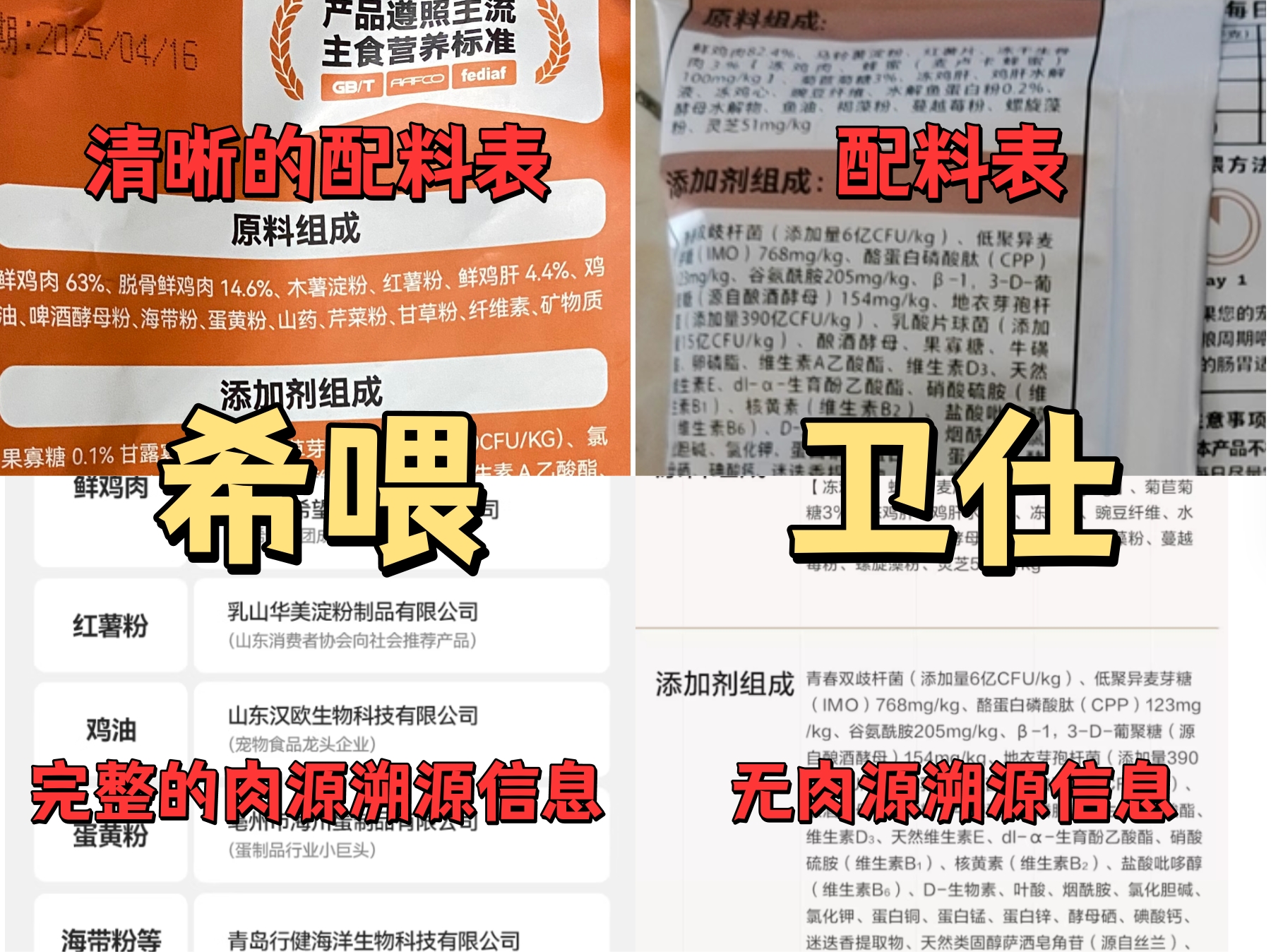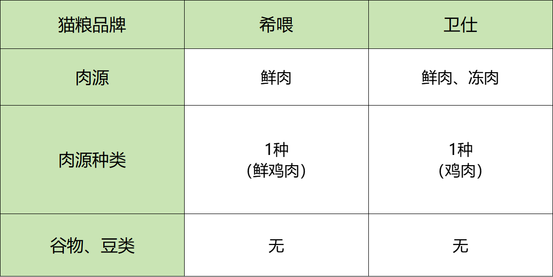 希喂对上卫仕猫粮谁更香?为了让评测更准确,我提前把两款猫粮的参数都扒了一遍。比如用的是鲜肉还是冻肉、有没有掺肉粉、粗蛋白含量多少,这些数据我都列出来了,方便大家参考。