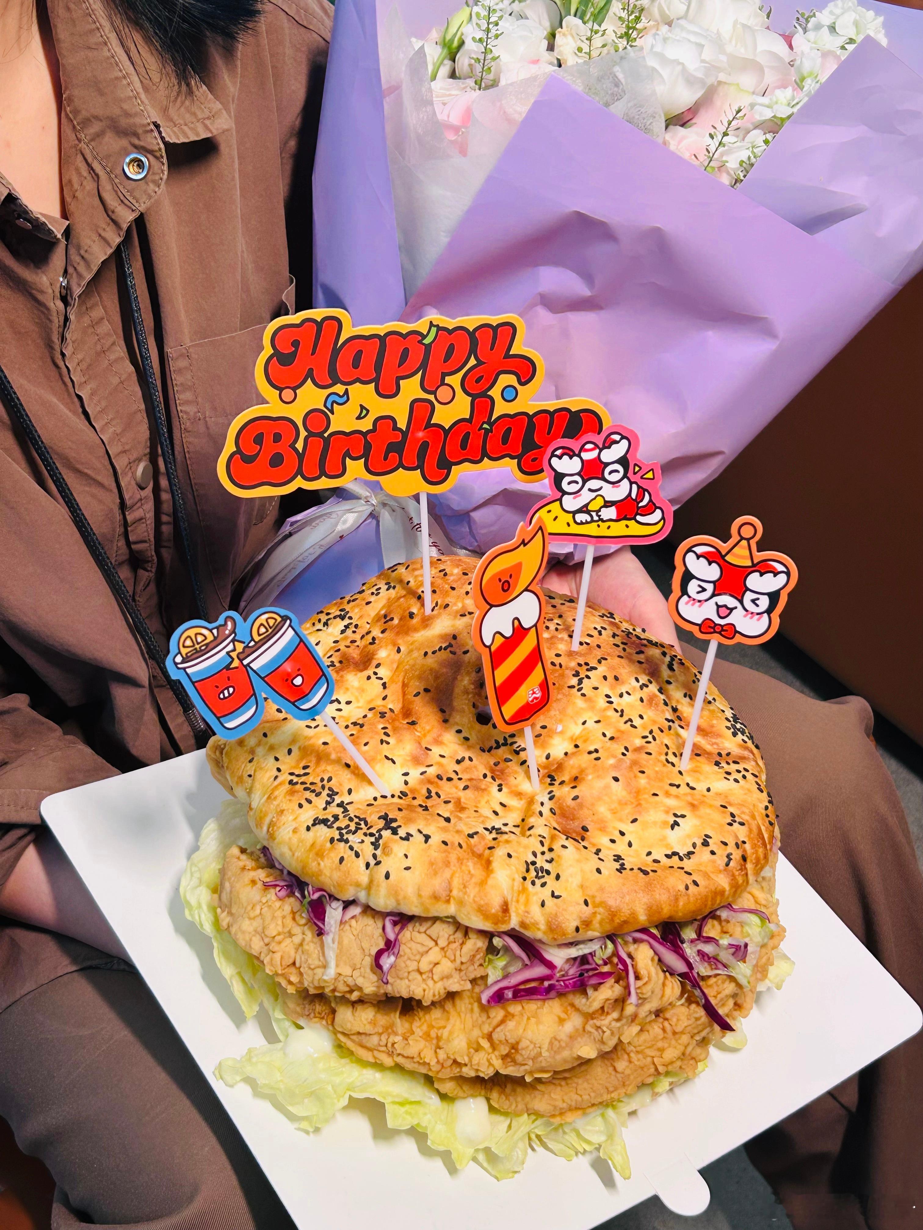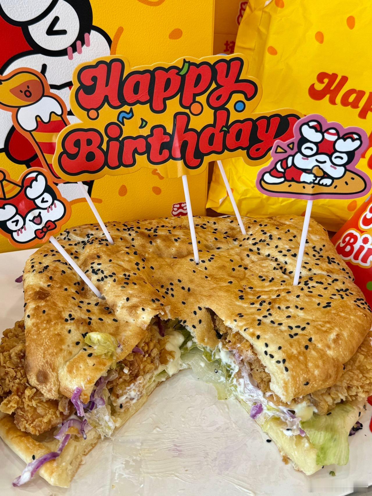 🎉妈耶!不爱吃甜腻生日蛋糕的有福气了[憧憬]!塔斯汀居然上线了生日大汉堡[哇][哇]