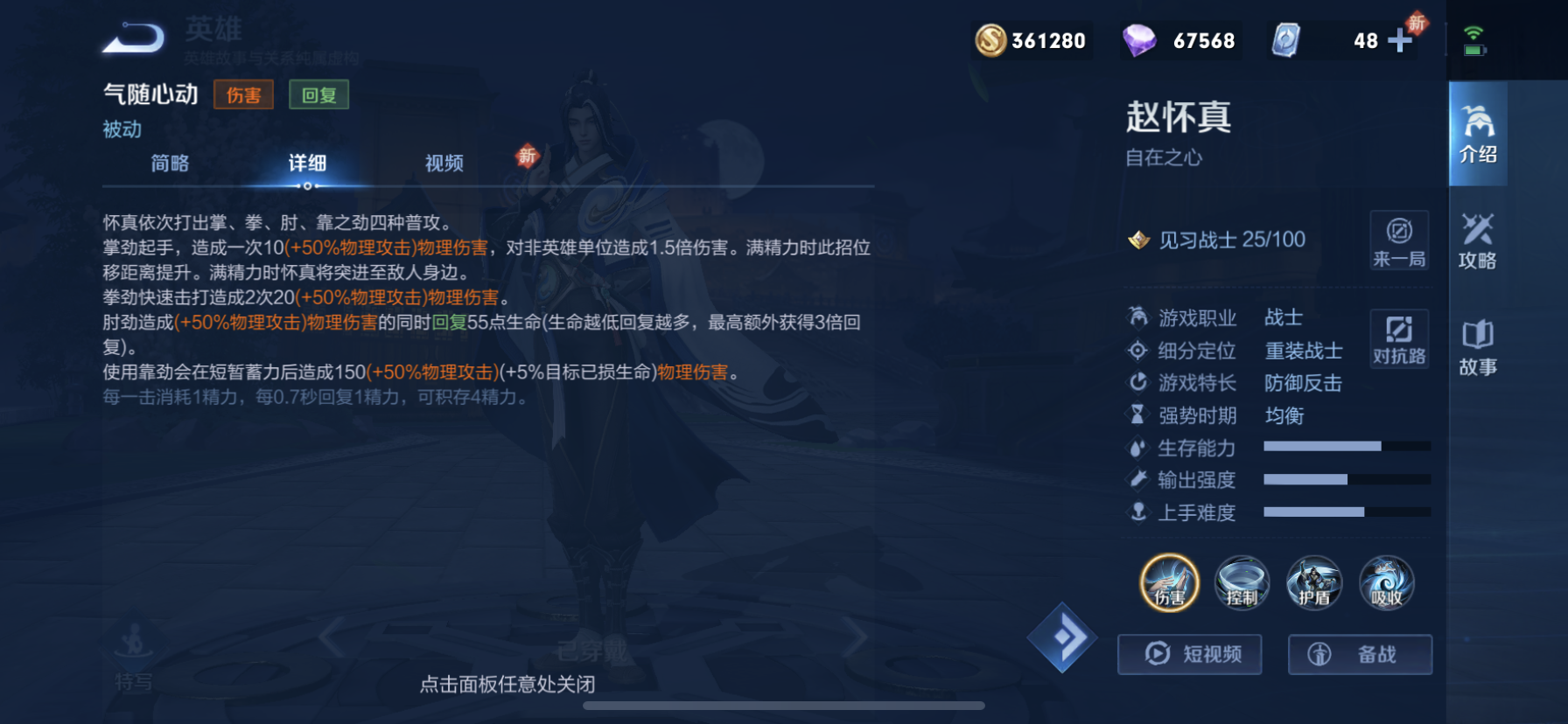 3 我们前面说到一定不要出攻速装,是因为赵怀真的被动。他的平A掌、拳、肘、靠,分别是需要0.7秒才能有效果。如果攻速快了,那完全打不出效果,收益甚至为负。