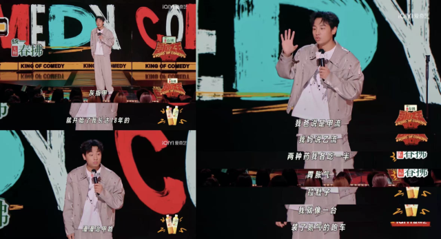 同样轻易受不了伤害的,还有从小就被原生家庭的新型家庭合作医疗“练出来”了的鑫博。从小生活在农村的他父母属于是“小病自己看,大病互相看”的。鑫博指甲被踩瘀血了,父母“诊断”是真菌感染的灰指甲,并开启了长达18年的慢慢“治甲路”;打了个喷嚏爸说是甲流妈说是乙流,双方不退让只能两种药各吃一半,当两种药的副作用“胃胀气”和“拉肚子”碰撞在一起,鑫博:“我就像一台装了氮气的跑车”,别说了小编脑子里有画面感了!直到后来鑫博得了肺炎,说是拍了片子显示肺上有阴影,鑫博:“怎么不拍拍心里?”噗,怎么又心酸又好笑啊!