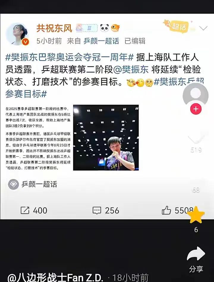 但这次,樊振东的目标可能根本不是赢球。 不懂这层深意,你看比赛只看到了皮毛。他把乒超联赛当成了自己的技术试验场,所有的新想法、新技术,都拿到赛场上真刀真枪地检验。打完就复盘,能用的留下,不行的马上调整。 这种打法,让他第一阶段就打出了7战全胜,移动速度快得惊人。更关键的是,他不是只为自己,而是要把这些验证过的实战经验,掰开揉碎了,传给国乒的小队员们。这已经不是一个运动员在比赛,而是一个领军者在为未来铺路。 除了樊振东的自我革新,孙颖莎和王曼昱的状态回归之战也备受瞩目。高手过招,输赢之外,看的是他们如何突破瓶颈,不断进化。 顶级运动员的强大,不在于永远胜利,而在于永远在进化的路上。