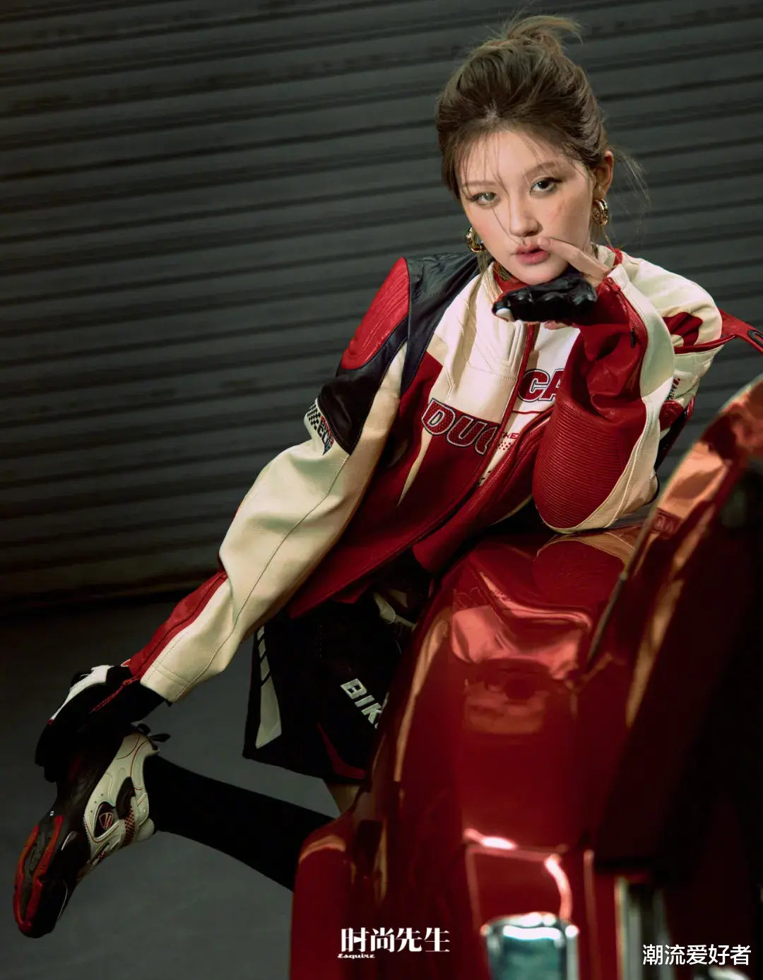 照片中,赵露思身着各种机车皮衣、阔肩西服外套,将长发盘起,眼神充满了坚定与自信,举手投足间尽显都市机车女郎的率性与不羁。这组全新大片彻底抛弃了赵露思以往的甜美可人形象,更让人们看到了她作为时尚爱豆的多面可塑性。