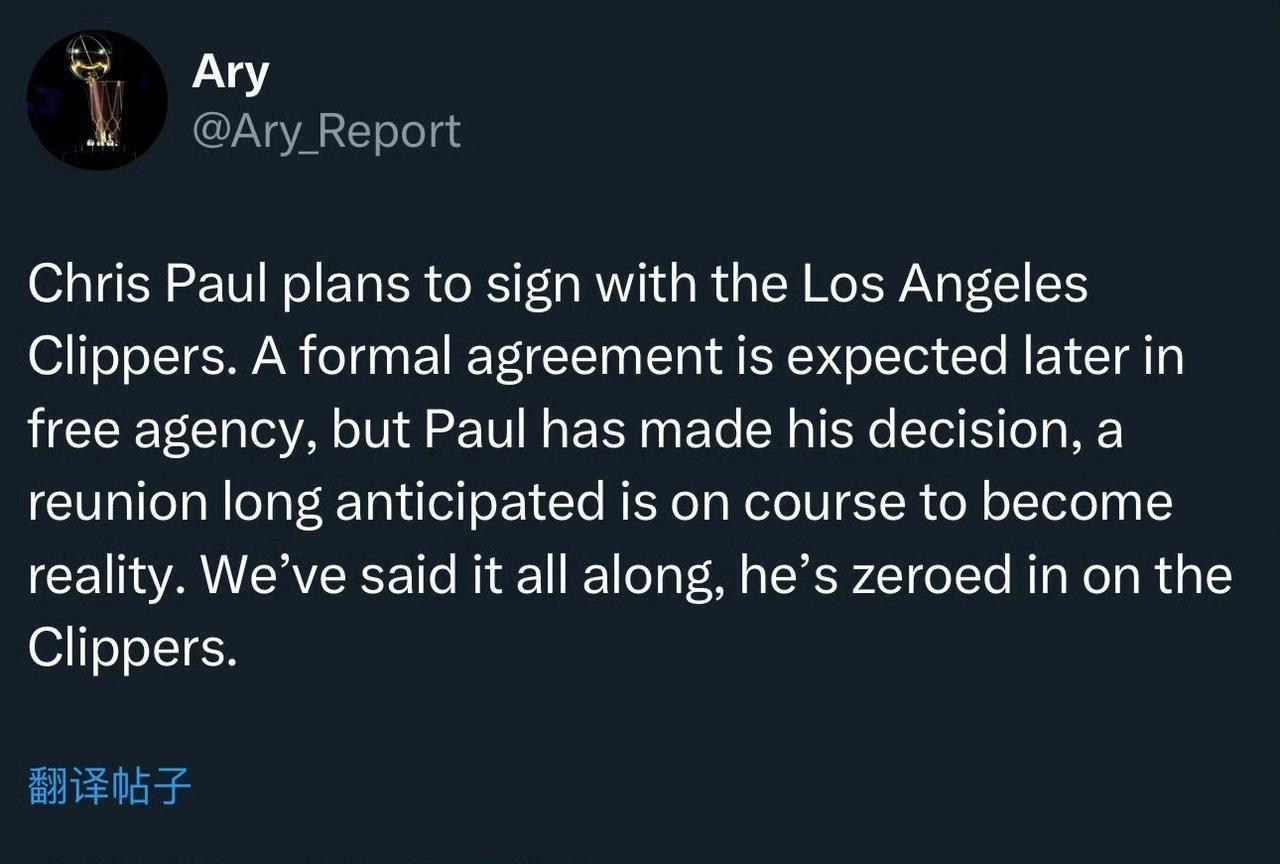 保罗来了!确定!灯泡重聚,哈登和保罗联袂担当快船的球队大脑! 其实在确定之前已有几个端倪可以推断: 1.保罗说想在离家近的地方打球 2.比尔关注快船的球员们时,关注了保罗 3.保罗点赞了比尔加盟快船官宣的社媒 刚才来自记者Ary的最新消息,保罗答应加盟快船,并将在不久之后官宣这一决定! 圣保罗曾是“空接之城”的船长(当时队友是格里芬和小乔丹),在他表达最后一舞后,签约快船是最好的归宿,在自己生涯高光的球队退役,体面又荣耀!#记录我的2025#