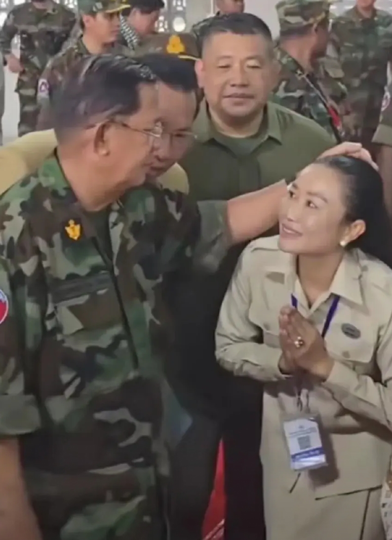 在公共场合,摸着女下属的头听汇报,这全球独一份吧?他就是柬埔寨洪森。