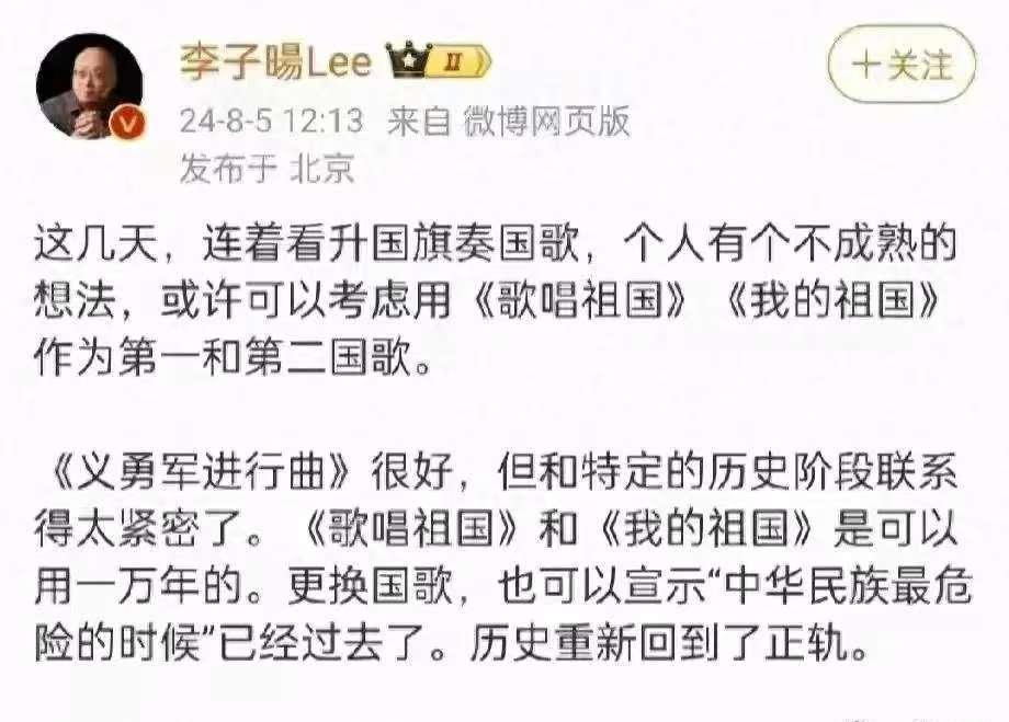 疑似内鬼暴露!去年,中国一大V竟然建议把国歌换掉!他的理由是大国不应该总是有受害