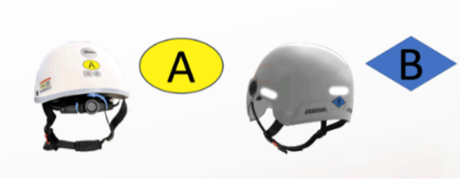 A类头盔(通用):后部标识为黄色椭圆形图案 + 字母A。摩托车、电动自行车骑乘者均可使用。