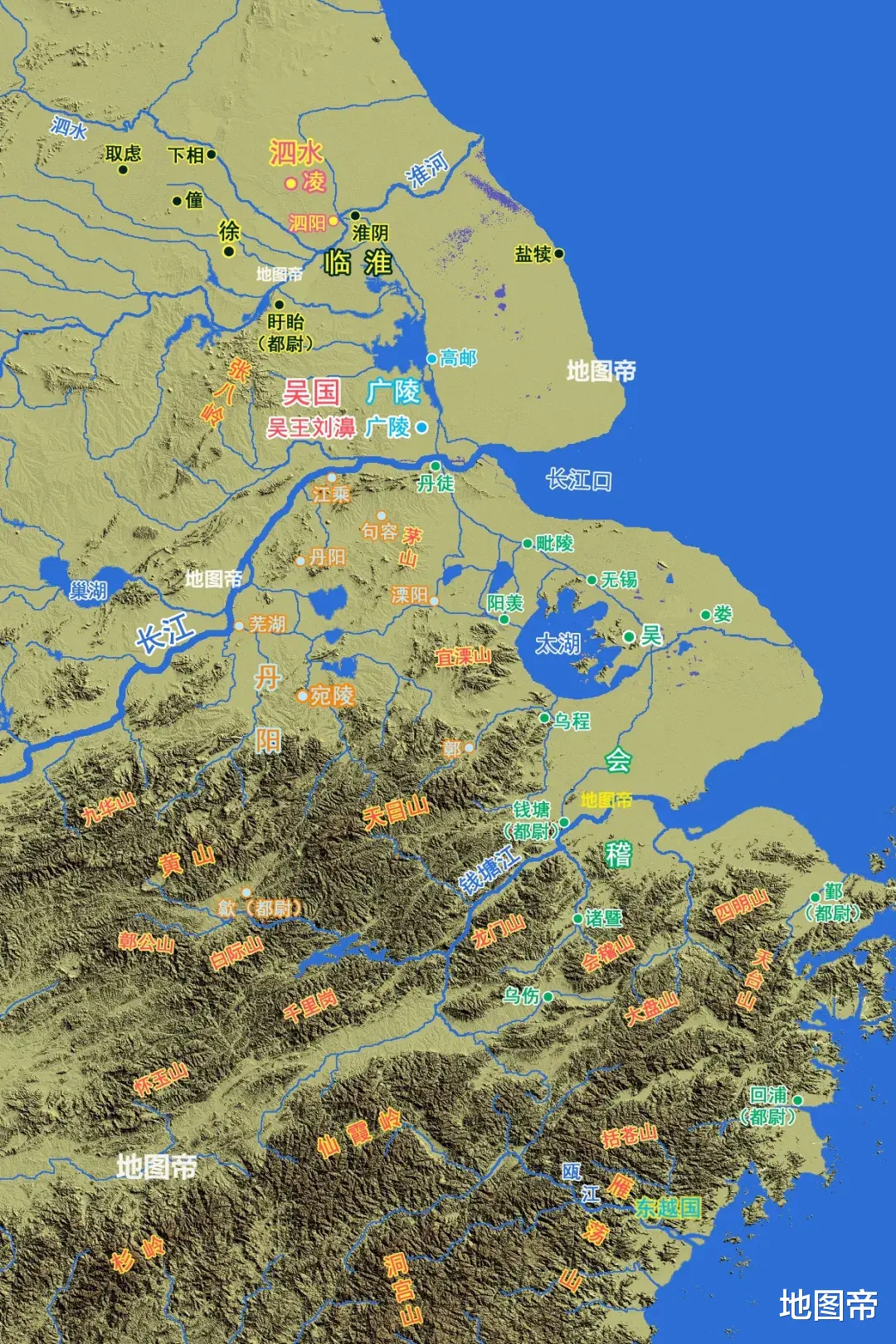 西汉初刘邦封二哥刘喜之子刘濞为吴王,领吴越旧地,东南五十三城,定都广陵。刘濞在吴国倚山铸钱,煮海为盐。到汉景帝即位,吴国有诸侯之位,而实富于天子,吴王濞称兵于此,汉室几为动摇。