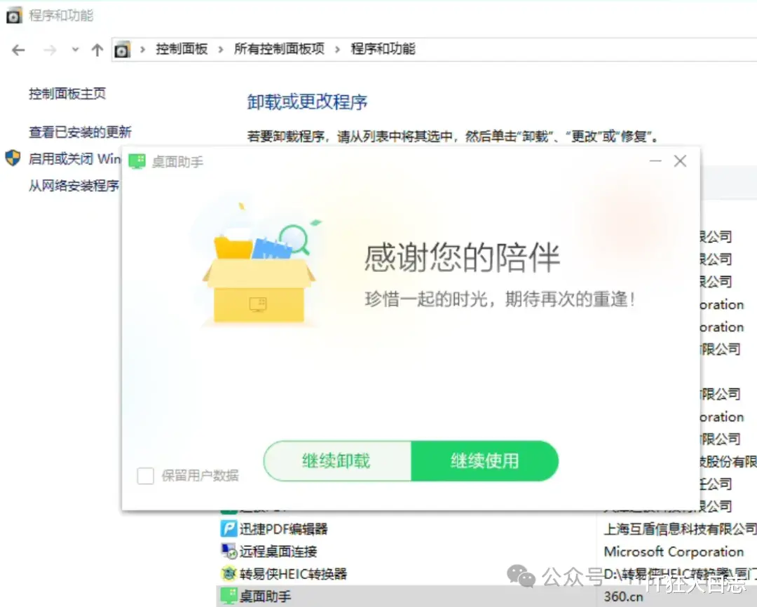 那咱还能留它吗?直接打开控制面板,卸载这个桌面助手。