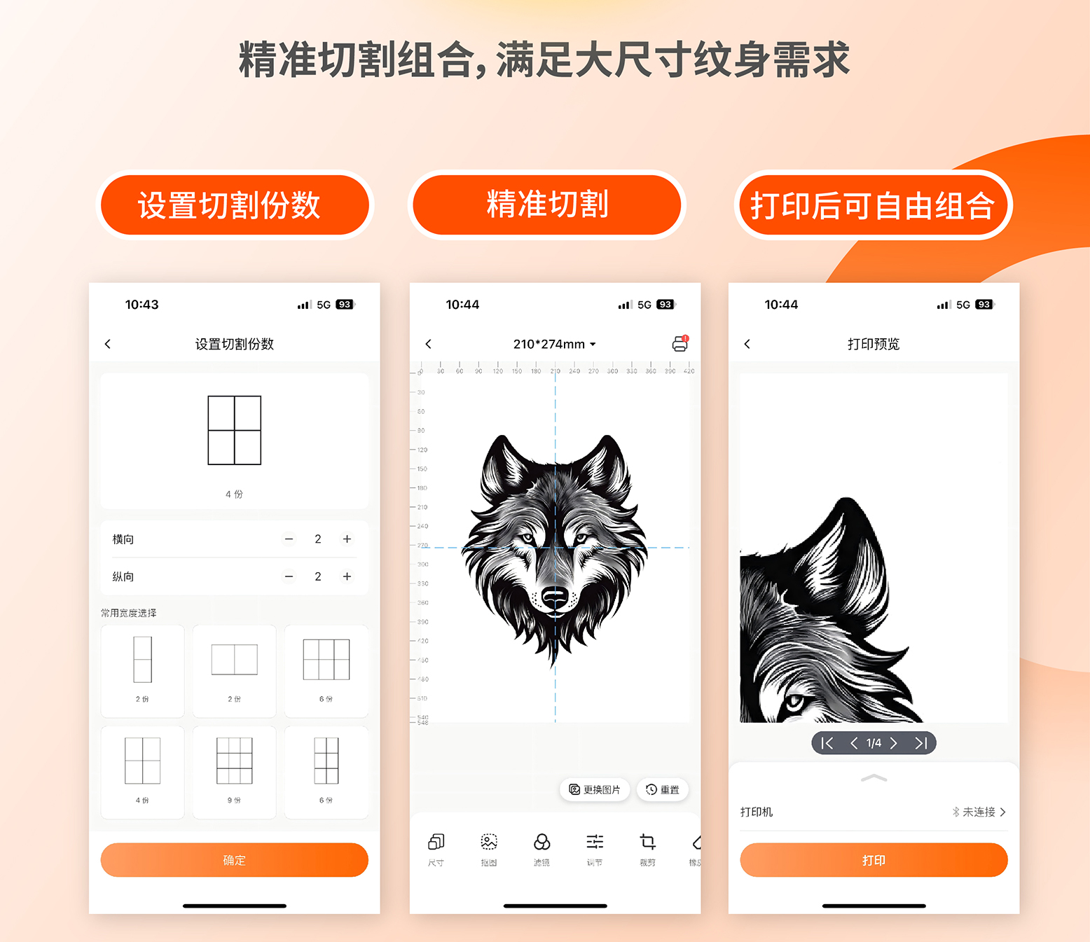 ●功能亮点:当面对大尺寸纹身打印任务时,它能够对纹身图案进行精准切割,自动分割图案保持连接点,支持多页拼接完成大幅面设计。
