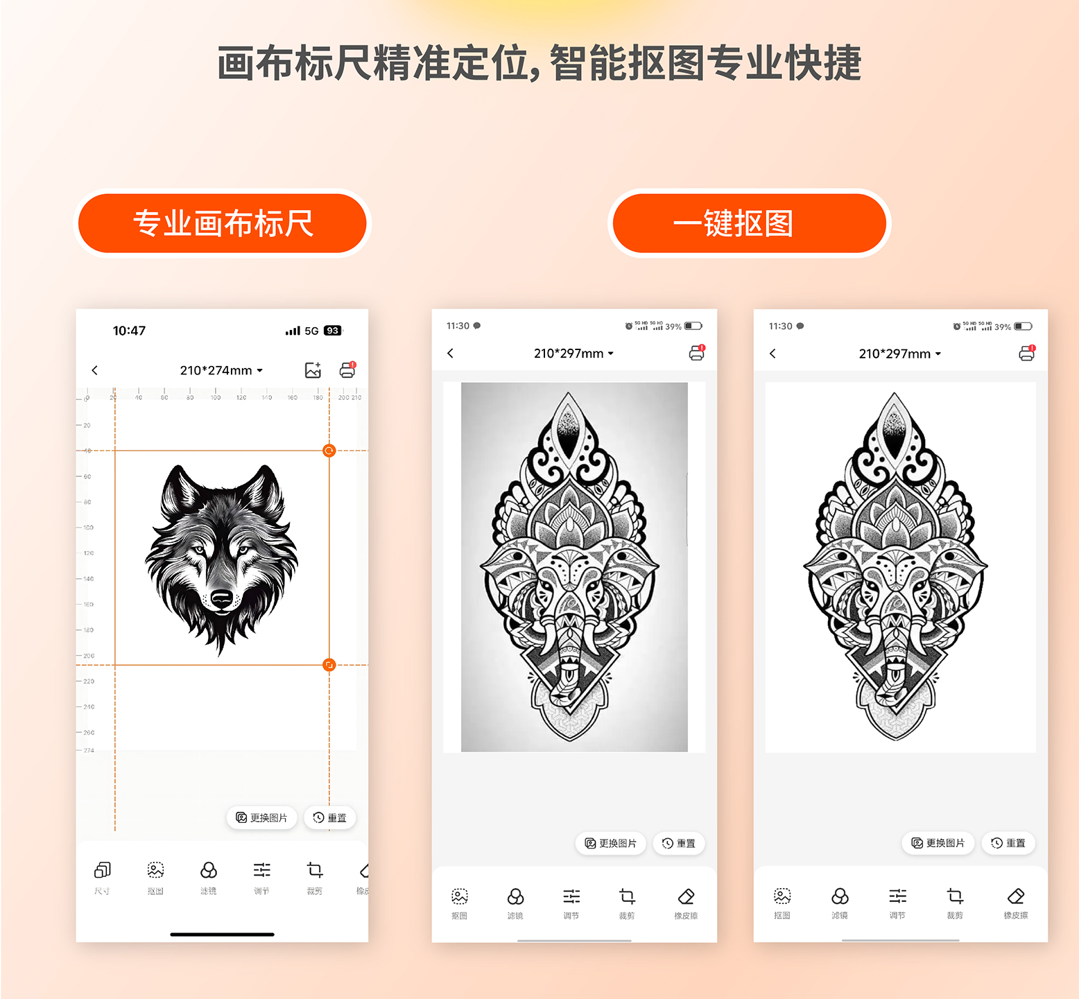 ●功能亮点:新增画布标尺,让您在设计纹身图案时能够精准把控尺寸与比例,确保图案布局完美。强大的抠图功能,可以轻松将图案从背景中分离出来,使创作更加随心所欲。