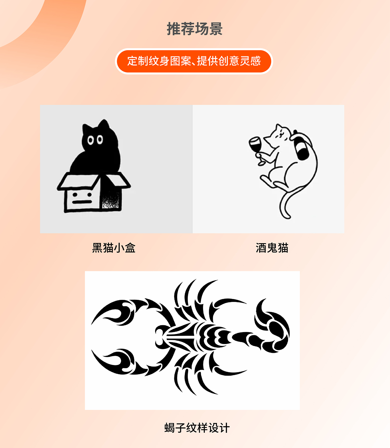 ●功能亮点:它如同一个创意灵感库,根据您输入的关键词、风格偏好等信息,可以快速生成个性化的纹身图案供您选择。
