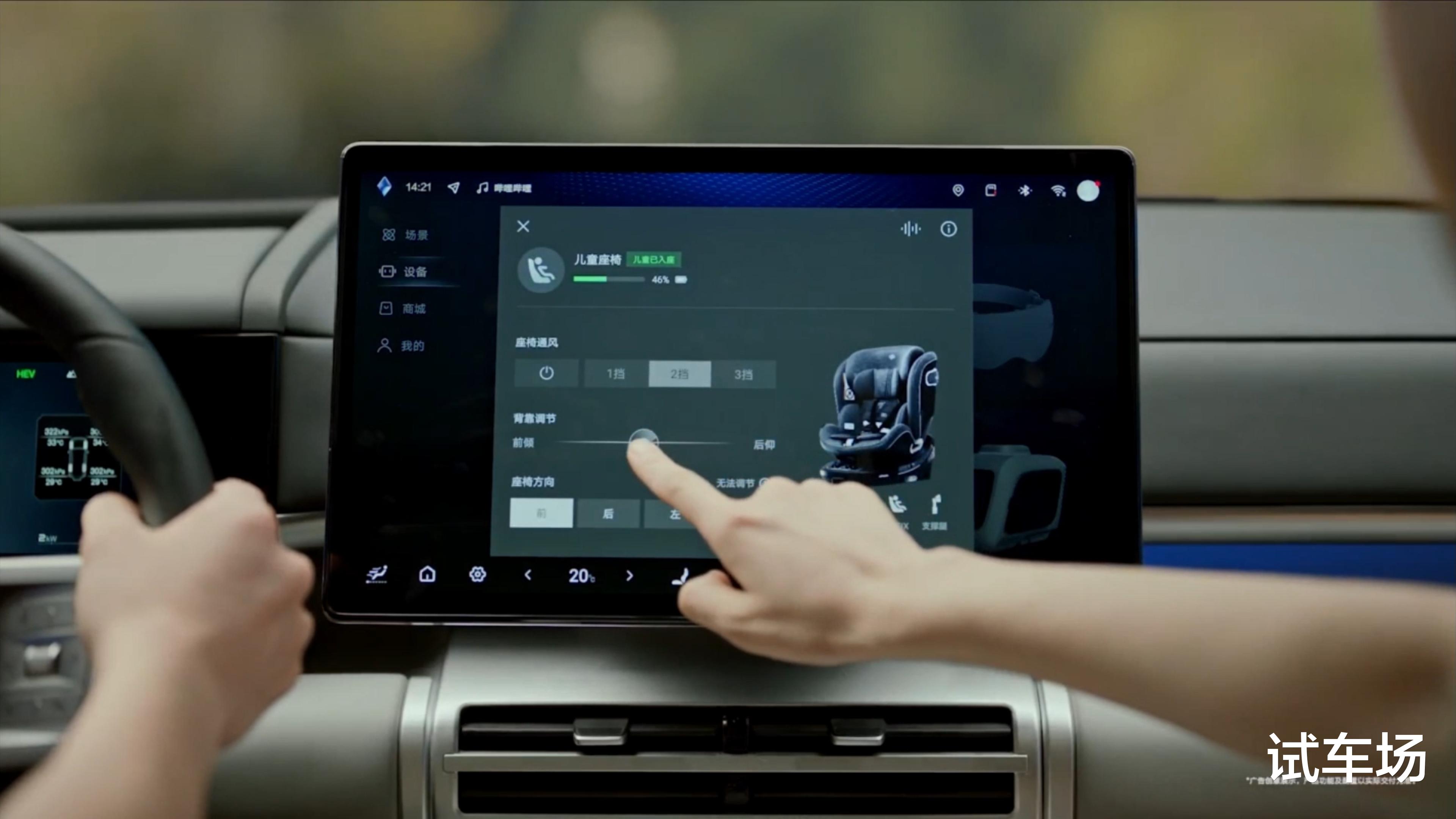 智能生态方面,钛7首发首搭比亚迪自研BYD Pad,这是行业首款专为“车载使用”而设计、支持车家两用的智能平板,支持45项车控功能,前排座椅背后的BYD Pad转轴支架,兼容市场上的各大主流平板,可在车内实现固定和充电。