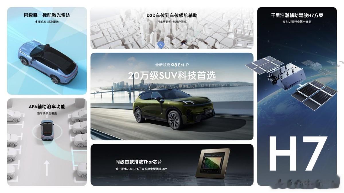 全新领克08 EM-P是同级唯一全系标配激光雷达的插混SUV;也是全球首款搭载Thor芯片的中型SUV车型,采用目前行业最先进的4nm制程,算力高达700TOPS,为复杂路况下的精准感知与决策提供强大支撑。依托中国车企算力第一、全球第三的吉利星睿智算中心2.0云计算平台,为辅助驾驶训练、智能座舱迭代和大模型推理提供了更加全面的支持。