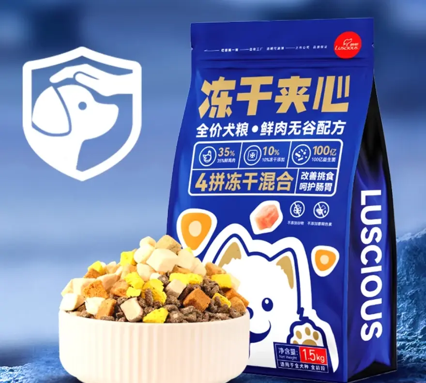适口特点:开袋有浓郁的天然肉香,冻干与主粮的风味组合层次丰富,无明显人工调味感,对挑食的狗狗有较强吸引力,让狗狗进食时更积极主动。