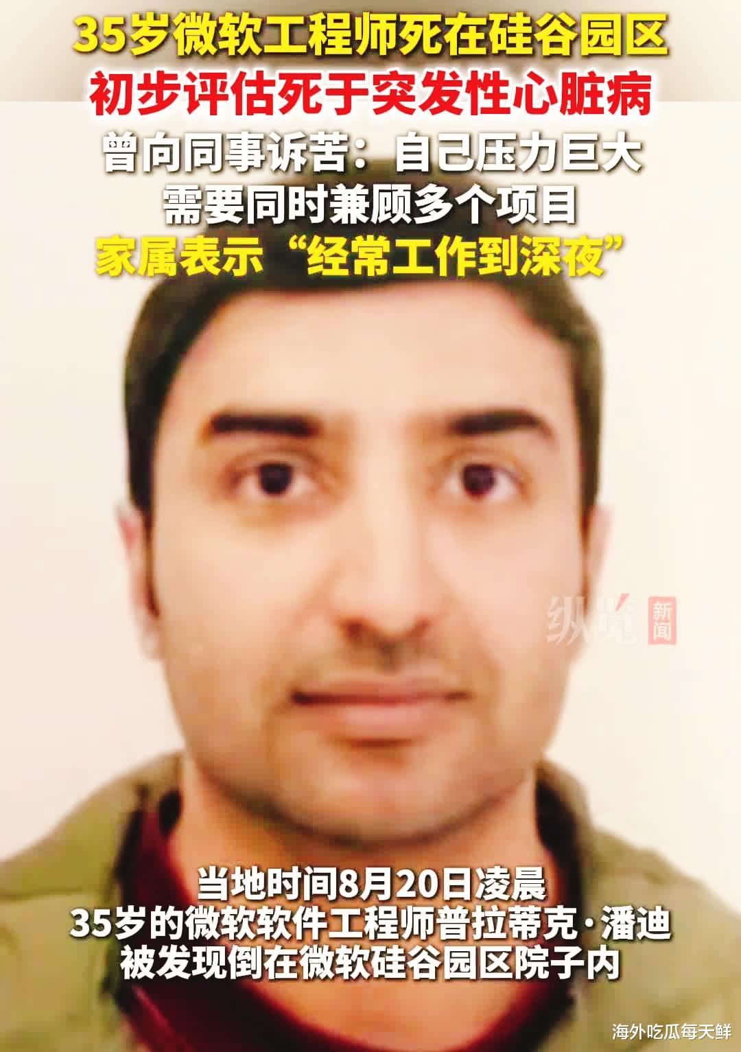 当地时间8月20日凌晨2点,微软硅谷园区监控摄像头仍在默默运转,定格下园区草坪上令人心碎的画面——35岁的软件工程师普拉蒂克・潘迪俯卧在地。