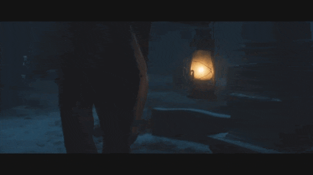 镜头扫过寂静的小镇,白雪、路灯、老商店。
