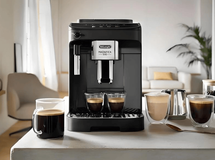 德龙Evo系列以“家用专业咖啡体验”著称,内置锥形磨豆系统,可调节研磨粗细与浓度,轻松制作意式、美式、拿铁、卡布奇诺等多种饮品。