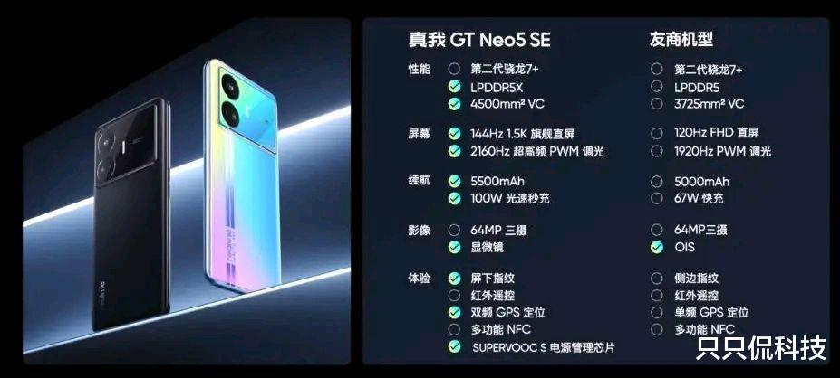 时隔七天,继红米Note12 Turbo之后,又一款搭载骁龙7+Gen2处理器的手机来了,它便是真我GT Neo5 SE。