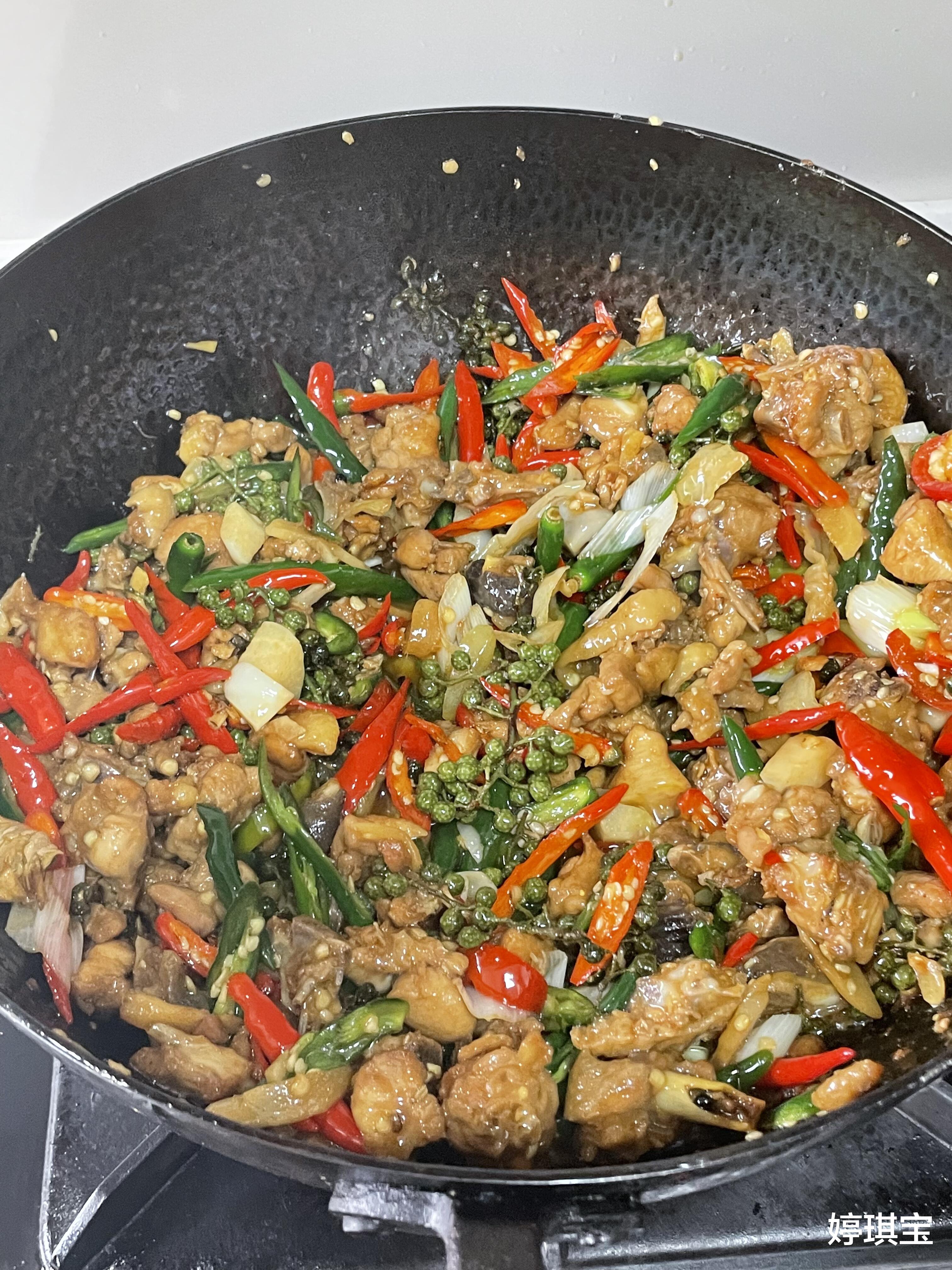 青花椒分两次放:一半爆香,一半起锅前撒,让麻味更有层次
