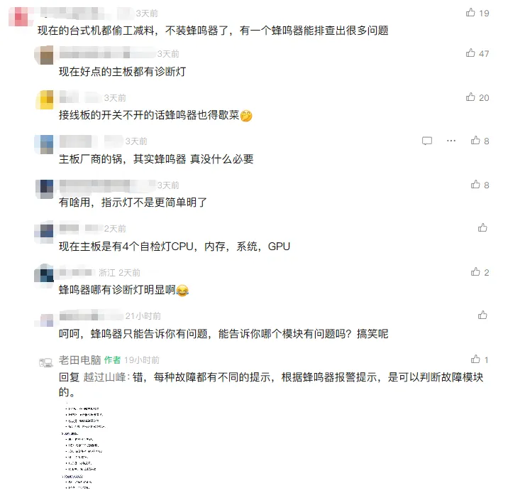 前几天写了一篇分享自己维修过程中故事的文章,之后,有一个老铁在后面留言区提出了这样一个观点:现在的台式机都偷工减料,不装蜂鸣器了,有一个蜂鸣器能排查出很多问题!