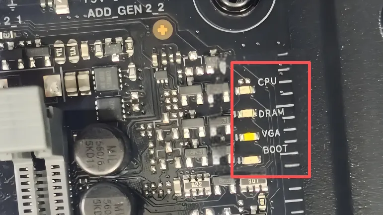 DRAM,通常为黄灯:内存异常信号。内存没插好,插槽脏了,内存条损坏,或双通道插错位置,等。