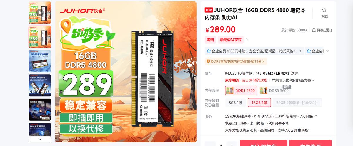 笔记本用户扩容成本对半砍:高性价比笔记本DDR5内存推荐现在16G内存的笔记本真的是不够用了!不少村民也买笔记本内存去升级一下自己的笔记本。升级笔记本的内存通常都是原装16G的套条,那单根就是8G,再买新的内存回来也不能直接加上去,要换下来,变成8+16=24G这种奇葩组合,买32G套条也不便宜啊,所以很多村民换笔记本内存更加侧重于性价比,因为笔记本内存基本没有超频的!!!