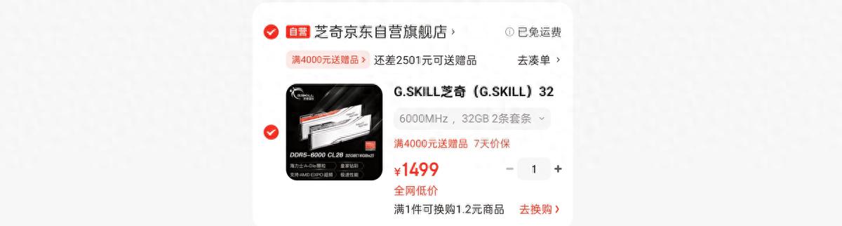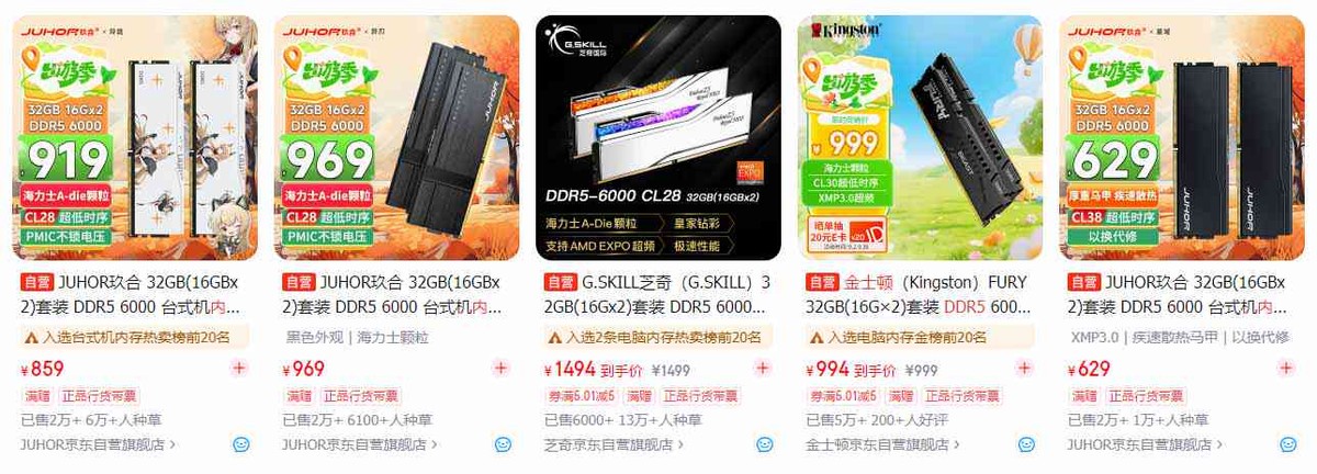 AMD平台选:6000Mhz CL28规格的;京东验证