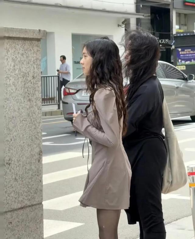 而这次俩人在韩国,所把一头直发烫了一个羊毛卷,俩人的发型应该是在同一家理发店做的,卷的弧度都差不多。
