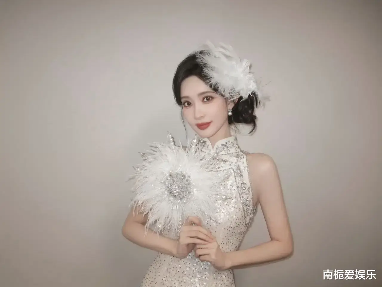 孟子义选择一袭纯白高开衩旗袍,红唇卷发,碎钻羽毛头饰在灯光下熠熠生辉,摇曳生姿间尽显“十里洋场第一交际花”的明艳气场。两人站在一起,一淡雅如水墨,一浓烈似油画,形成极具张力的视觉碰撞,被网友盛赞:“当她俩撑伞走过,仿佛看见半个民国。”