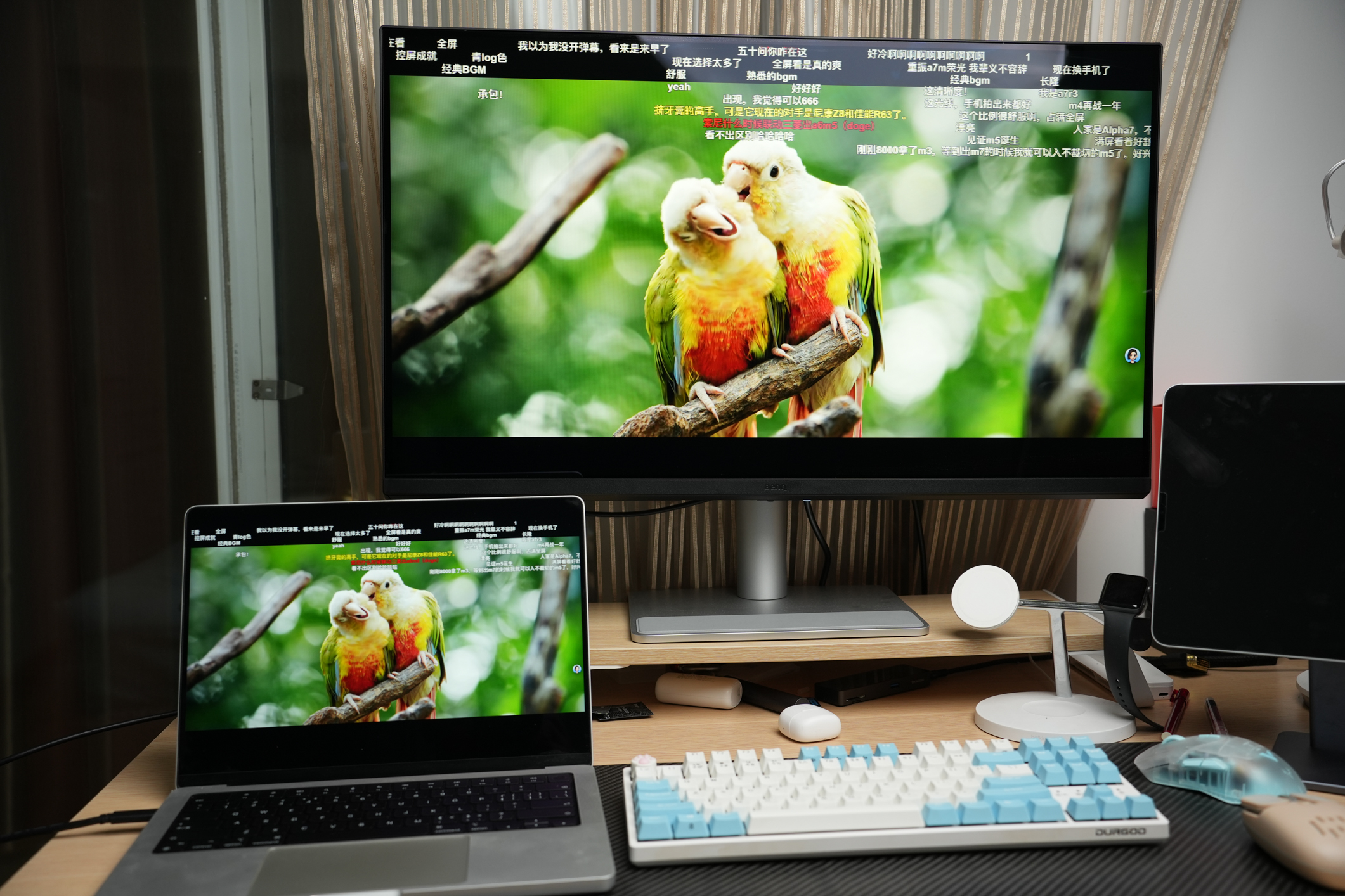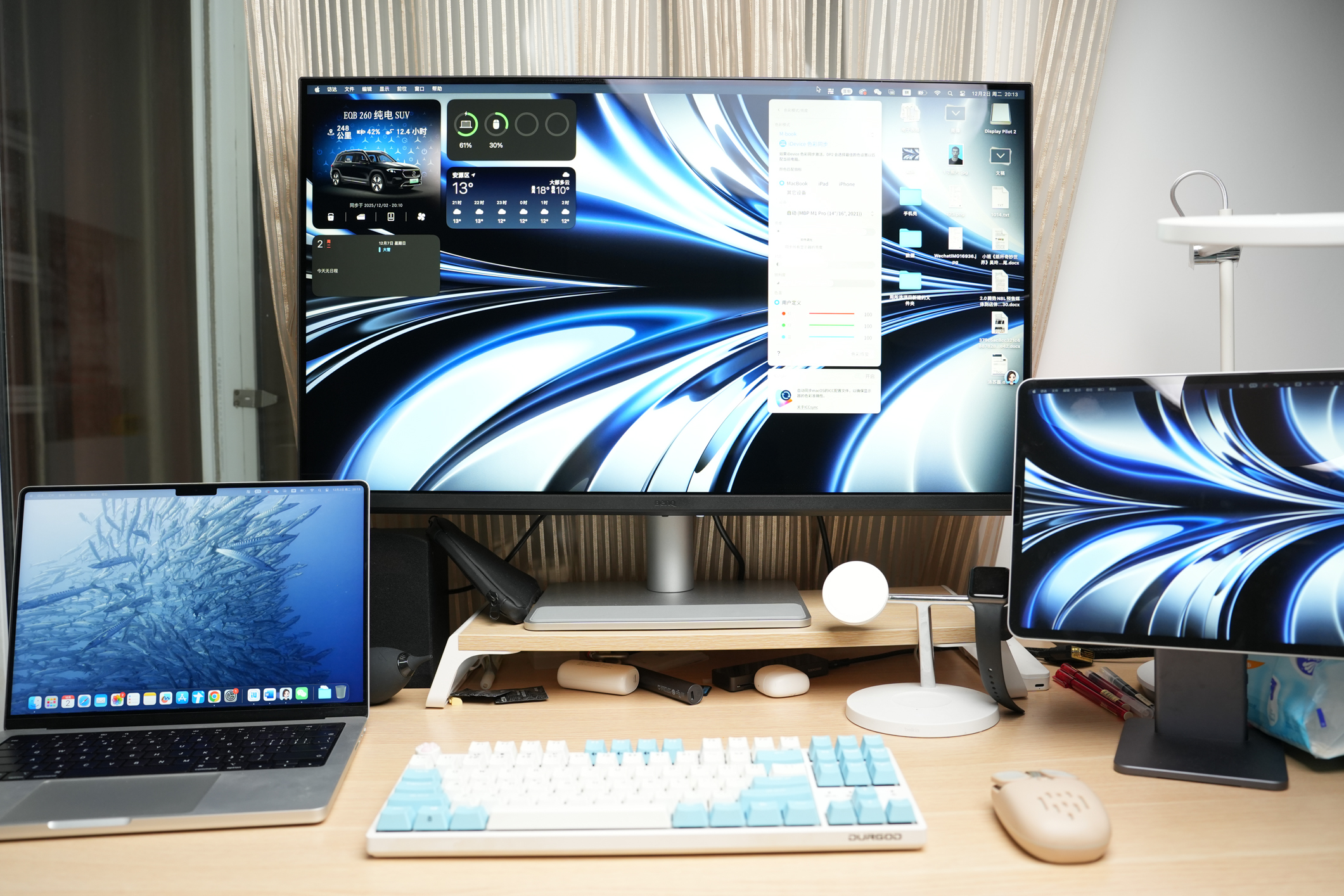 其独创的 M-book 模式和iDevice色彩同步功能堪称点睛之笔,通过明基色彩实验室针对 13 款 MacBook 型号的专项调校,开屏即同步苹果原生色彩,在 办公、观影等各种场景中,可精准还原 Rec.709 与 DCI-P3 双色域,彻底解决跨设备色彩偏差问题。