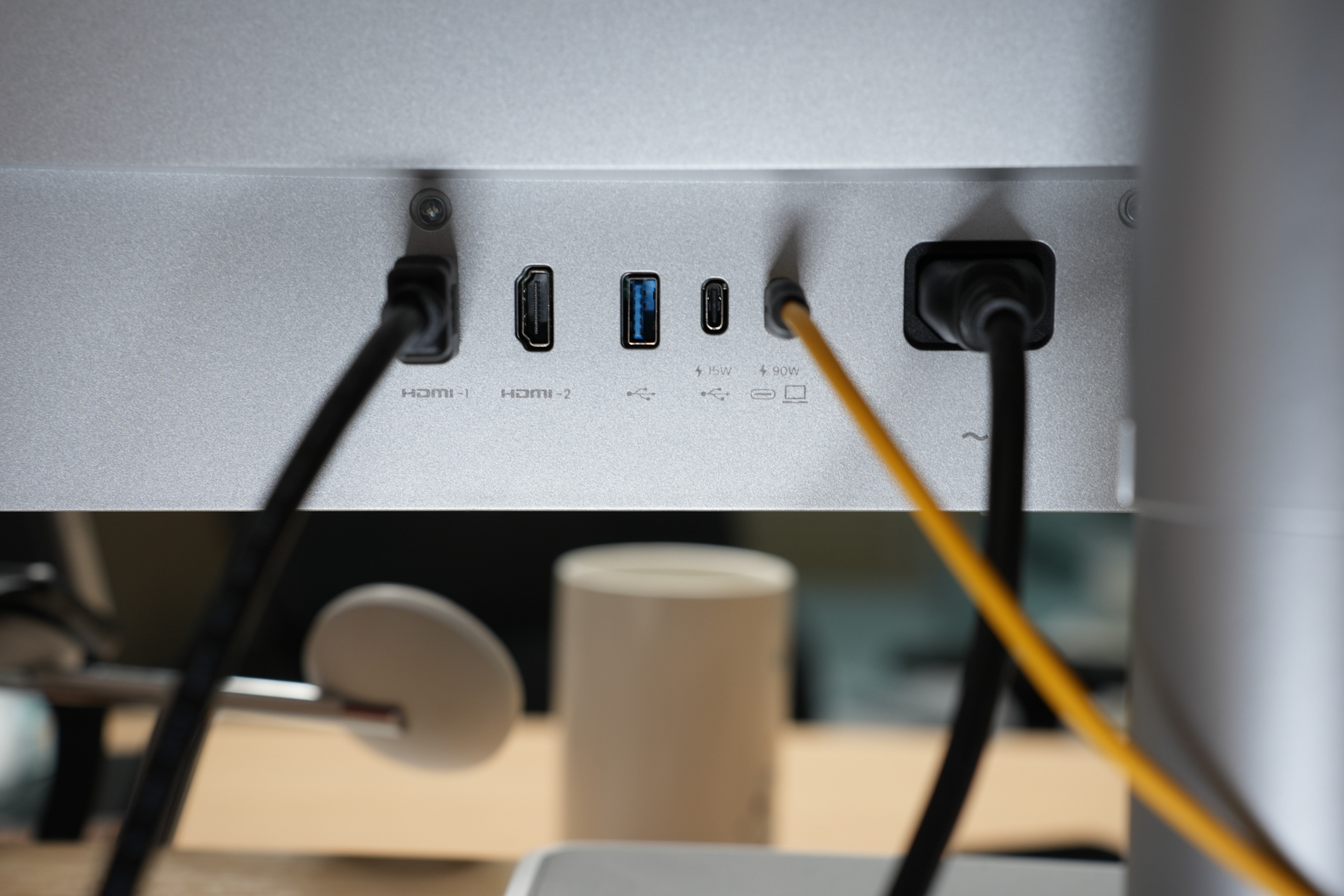 双 USB-C 接口设计贴心,90W 接口可为 MacBook Pro 反向供电,15W 接口则适配 iPad/iPhone 充电,一根线即可搞定显示、供电、数据传输,让桌面告别线缆杂乱。