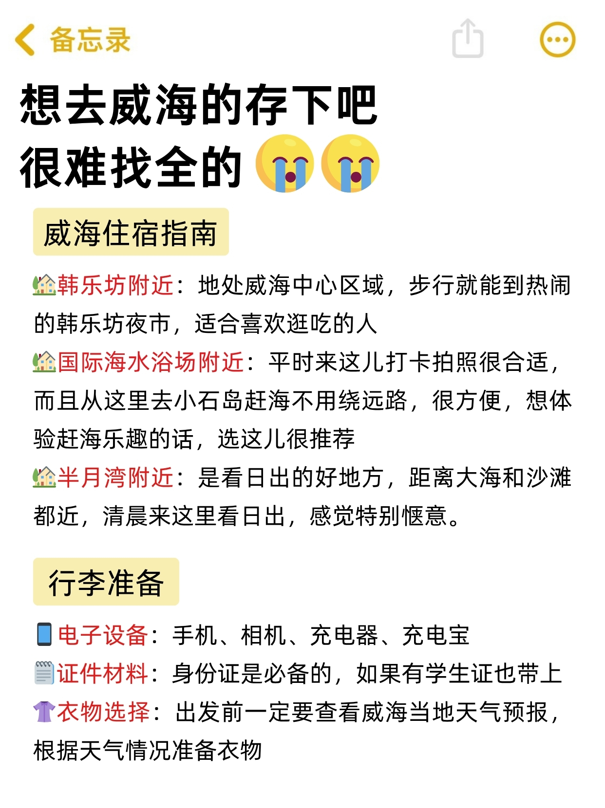 威海确实特别值得去玩😆,但要是没提前做攻略,真的容易逛得晕头转向、错过好风景🙃。所以我专门整理了威海这些经典打卡点的详细玩法。打算去威海的宝子们,建议先把这份攻略存好💨!