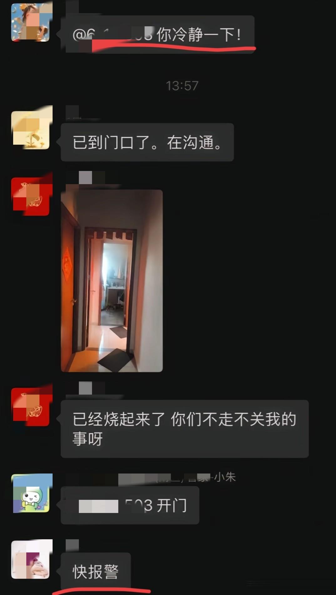 这一消息发出后,业主群直接炸锅!有劝告点火男子冷静的,有疯狂艾特管家去劝阻的,还有喊话赶紧报警的!
