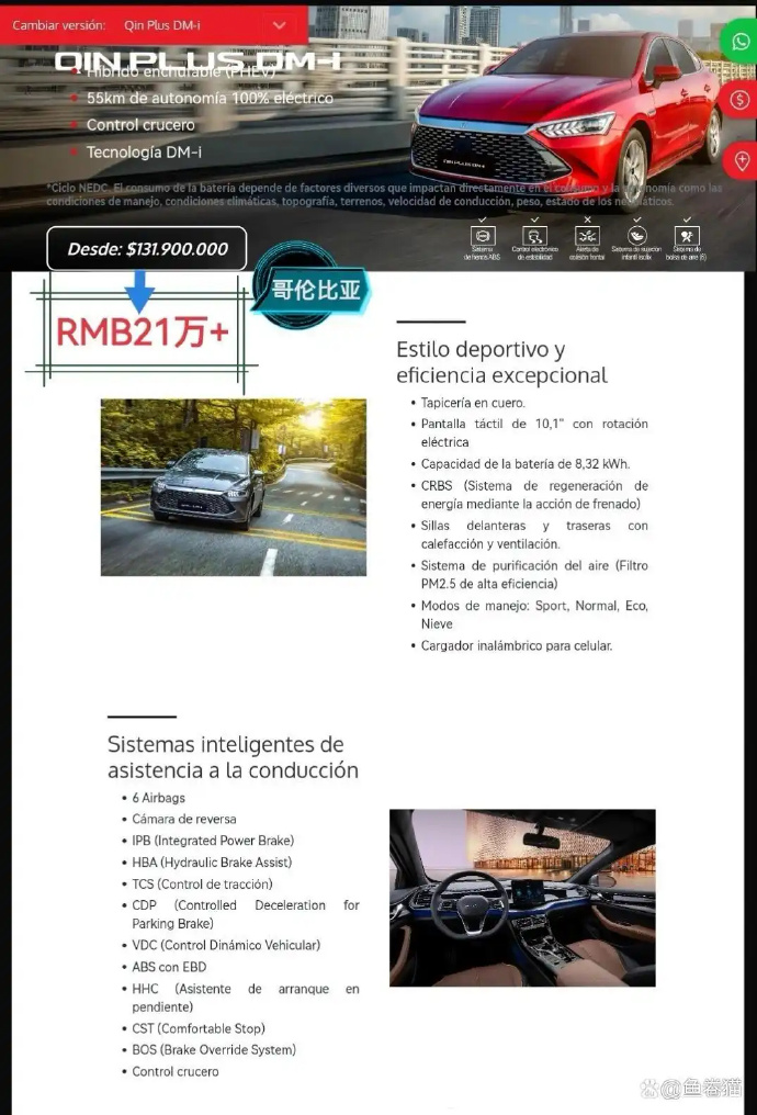 在哥伦比亚也有,55km起售价为哥伦比亚比索131900000(约合RMB21万+),价格接近国内市场的3倍。