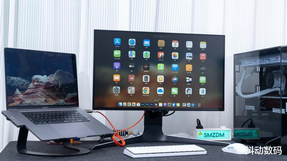 此外在工作场景下,除了满血的HDMI 2.1以及DP1.4接口之外,它还提供了支持反向90W充电的全能C口,可以方便的通过Type-C线材实现一线连接你的Mac笔记本或者电脑使用。
