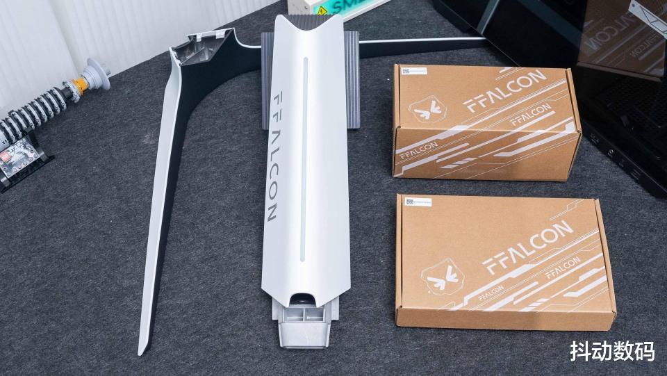 附件方面,外置电源适配器依旧保留。依旧是鸡爪式设计的显示器支架,显示器线材附件和外置电源适配器都有专门的包装盒。