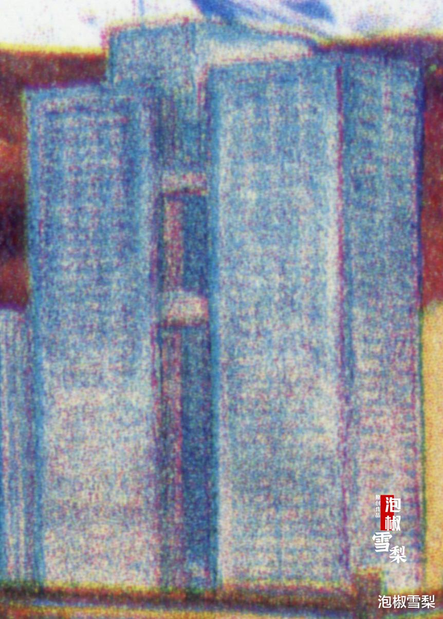 【第三部分】邮票暗记。此套邮票采用缩微数字作为暗记,为“7”和“0”,除第一枚拥有两处暗记外,第二枚与第三枚都只有一处暗记。